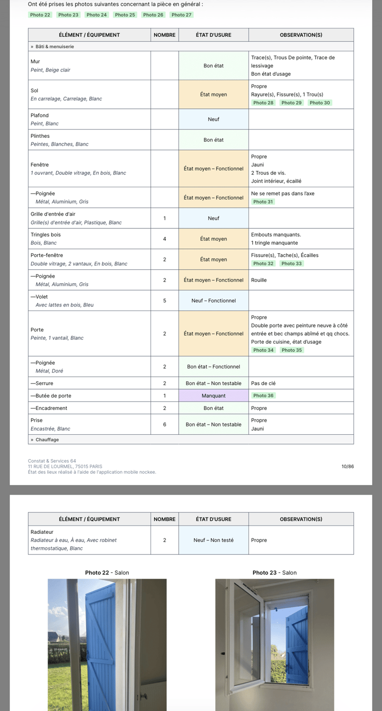Dites adieu aux descriptions floues. Mes rapports incluent des photos HD intégrées et un comparatif automatique entre l'entrée et la sortie pour identifier les dégradations en un coup d'œil.